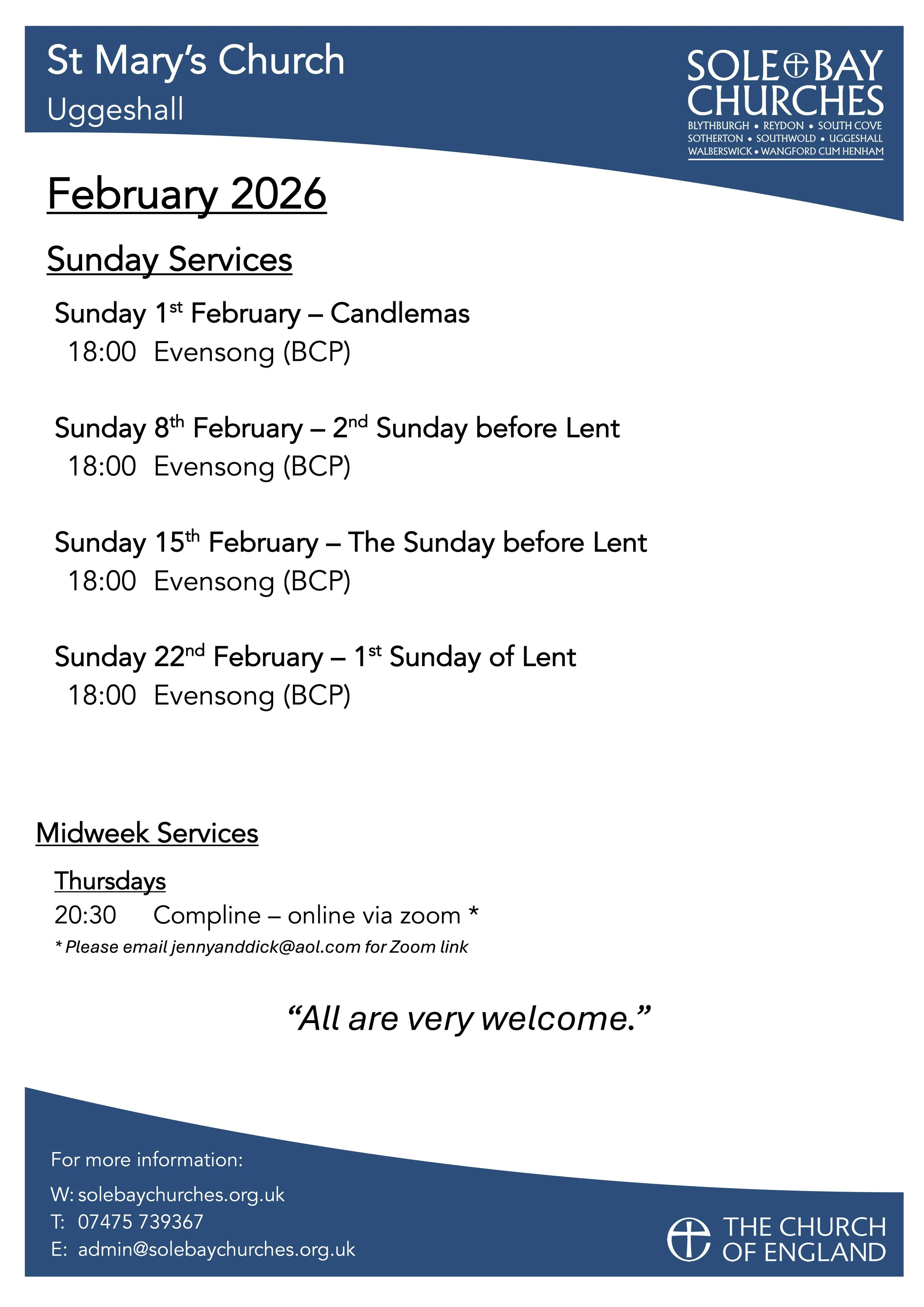 Services at St Mary’s, Uggeshall during February 2026